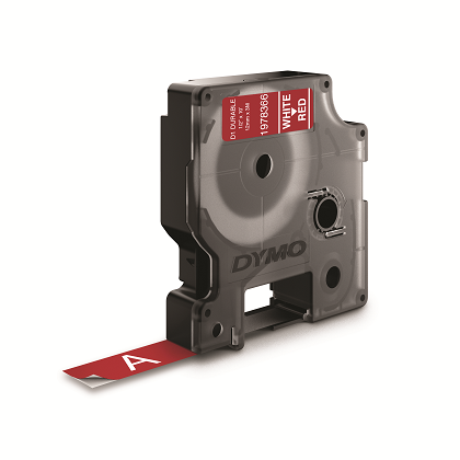 Taśma D1 Durable, 12 mm x 3 m, biały nadruk na czerwonym tle, 1978366