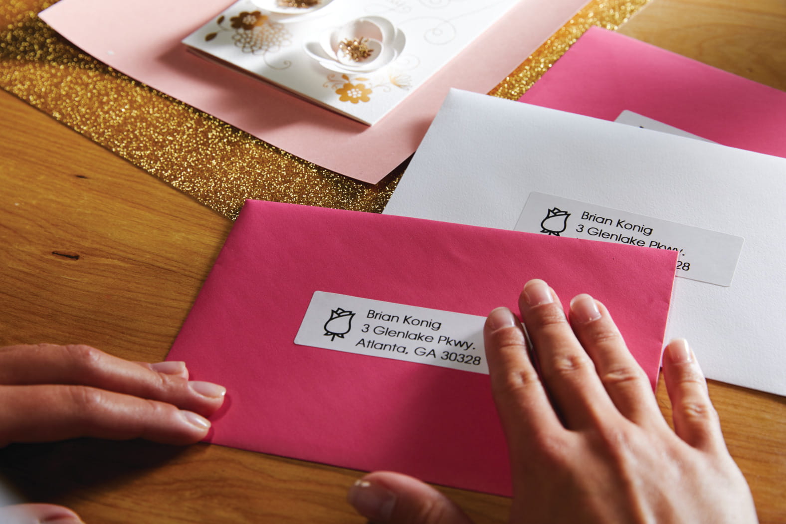 Wysokiej jakości etykiety adresowe/identyfikatory imienne zapewniają bardzo trwały nadruk, porównywalny jakością z drukiem laserowym. Przykładowe zastosowanie: adresowanie poczty, etykietowanie nośników danych zarządzanie gośćmi za pomocą spersonalizowanych etykiet imiennych z logo firmy, organizacja archiwów, oznaczanie segregatorów, półek, teczek itd.