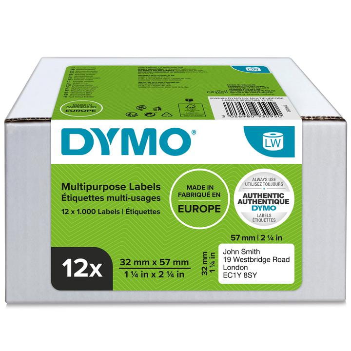 DYMO Etykiety różnego przeznaczenia MEGA VALUE PACK 24 szt. - 57 x 32 mm, biała, 24 rolki po 1000 etykiet, 11354, S0722540, 2223590