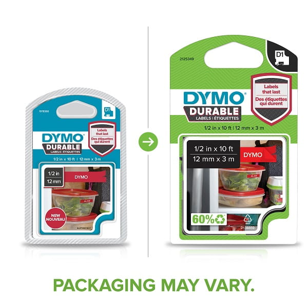 Trudne powierzchnie wymagają bardziej wytrzymałych i trwalszych etykiet niż etykiety standardowe. DYMO D1 Durable przylegają do powierzchni dzięki zastosowaniu kleju przemysłowego, dlatego m.in. nie odklejają się, nie ścierają i są trwałe nawet w przypadku działania światła słonecznego, ciepła, wilgoci i domowych środków czyszczących. DYMO D1 Durable są doskonałe do etykietowania w kuchniach, sprzętu sportowego, w miejscach do przechowywania na zewnątrz i nie tylko.