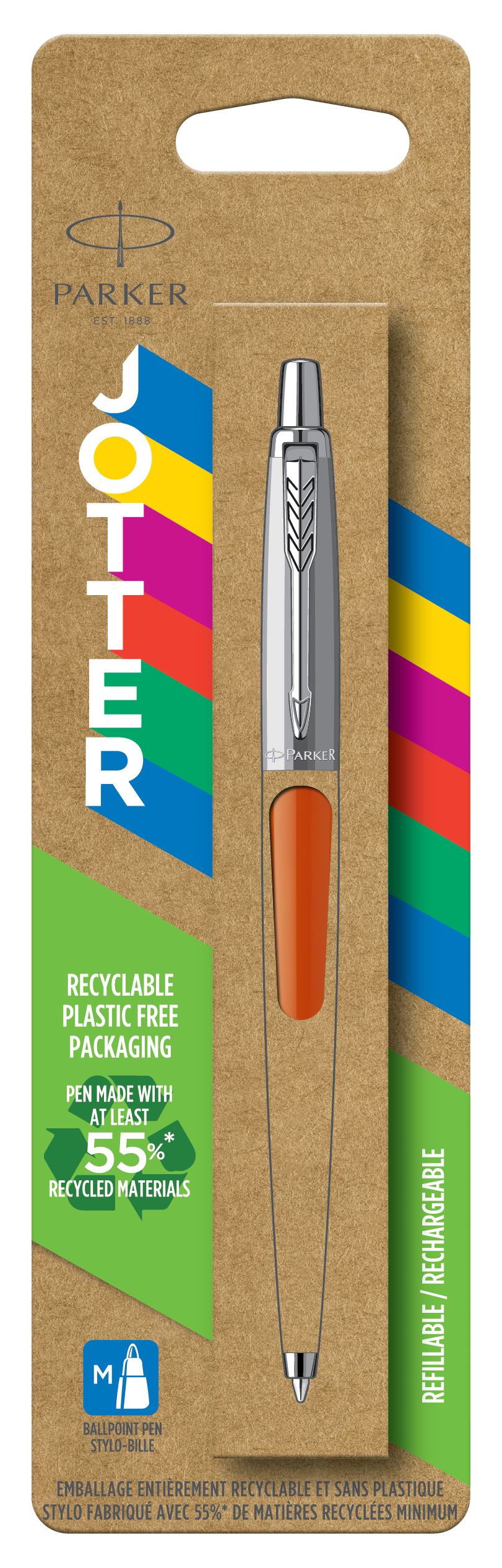 Długopis wykonany we Francji zgodnie z najwyższymi standardami jakości. A ponieważ marce Parker zależy, aby specjalne okazje przynosiły wiele radości, lecz nie przyczyniały się do niepotrzebnego wytwarzania odpadów, długopis można ponownie napełniać wkładami do długopisów Parker QUINK oraz wkładami żelowymi.