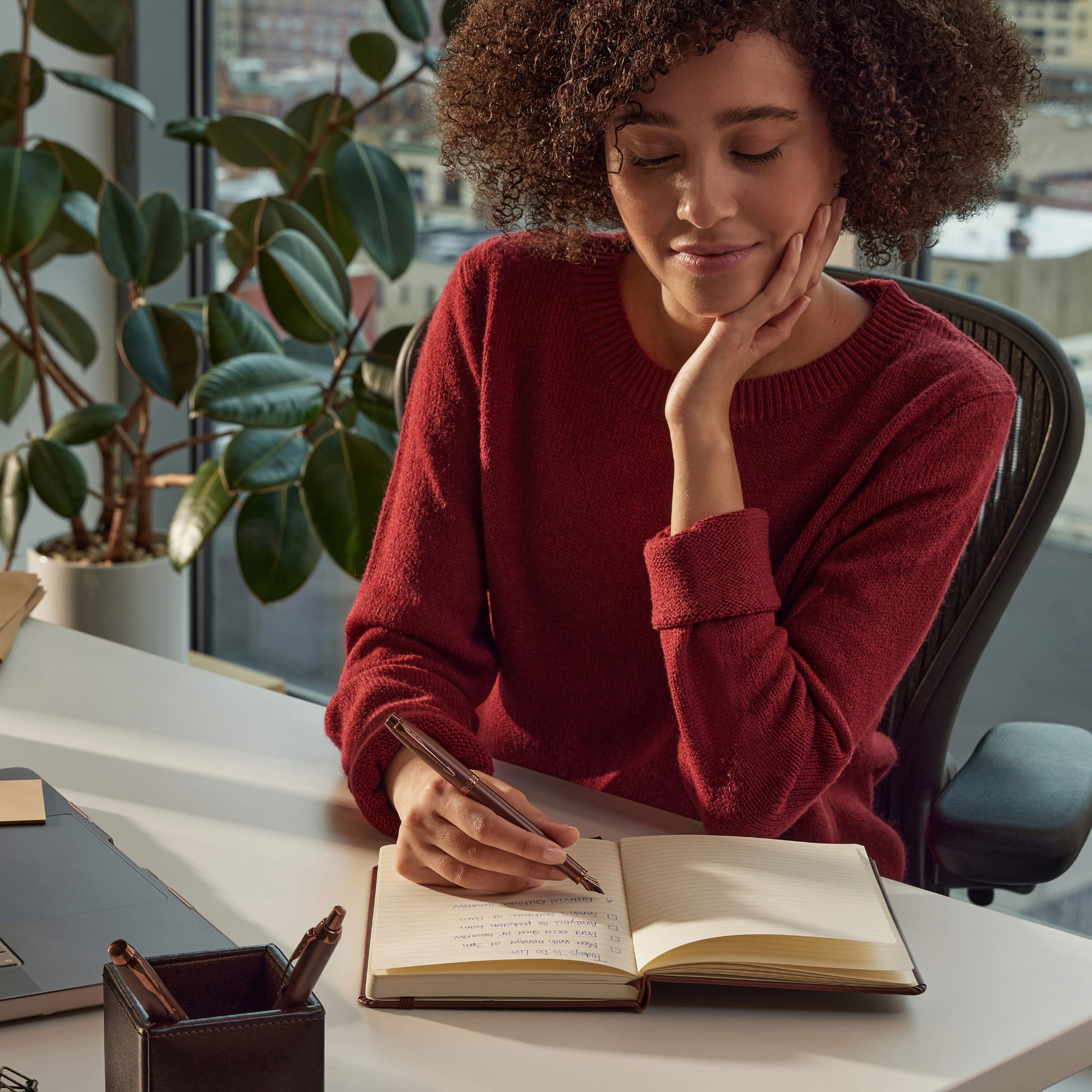 Satynowe wykończenie świetnie współgra z błyszczącymi detalami w postaci klipsa i pierścieni. Stalówka ze stali nierdzewnej pokryta burgundową powłoką PVD.
