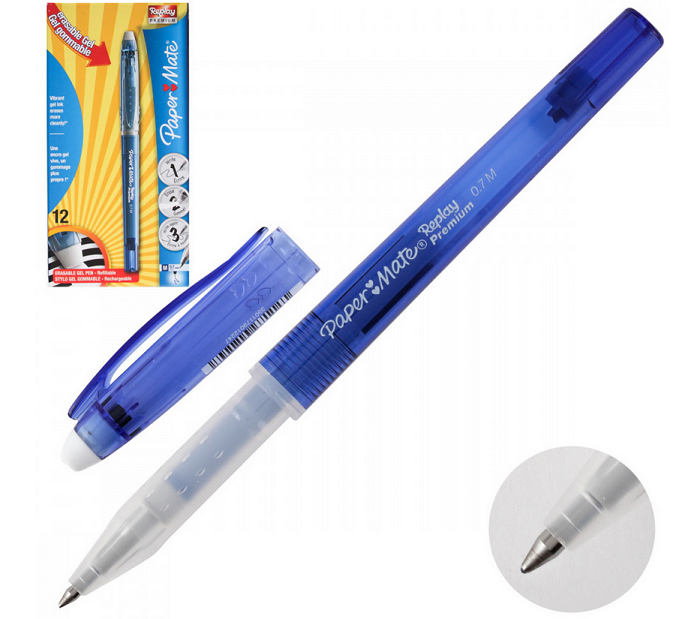 Długopis REPLAY od PaperMate to nowatorski długopis żelowy wymazywalny.  Dzięki  nowej formule tuszu, można pisać jak długopisem a wymazywać jak ołówkiem! Miękki, poduszkowy uchwyt zapewnia wygodne i nie nadwyrężające dłoni użytkowanie.
