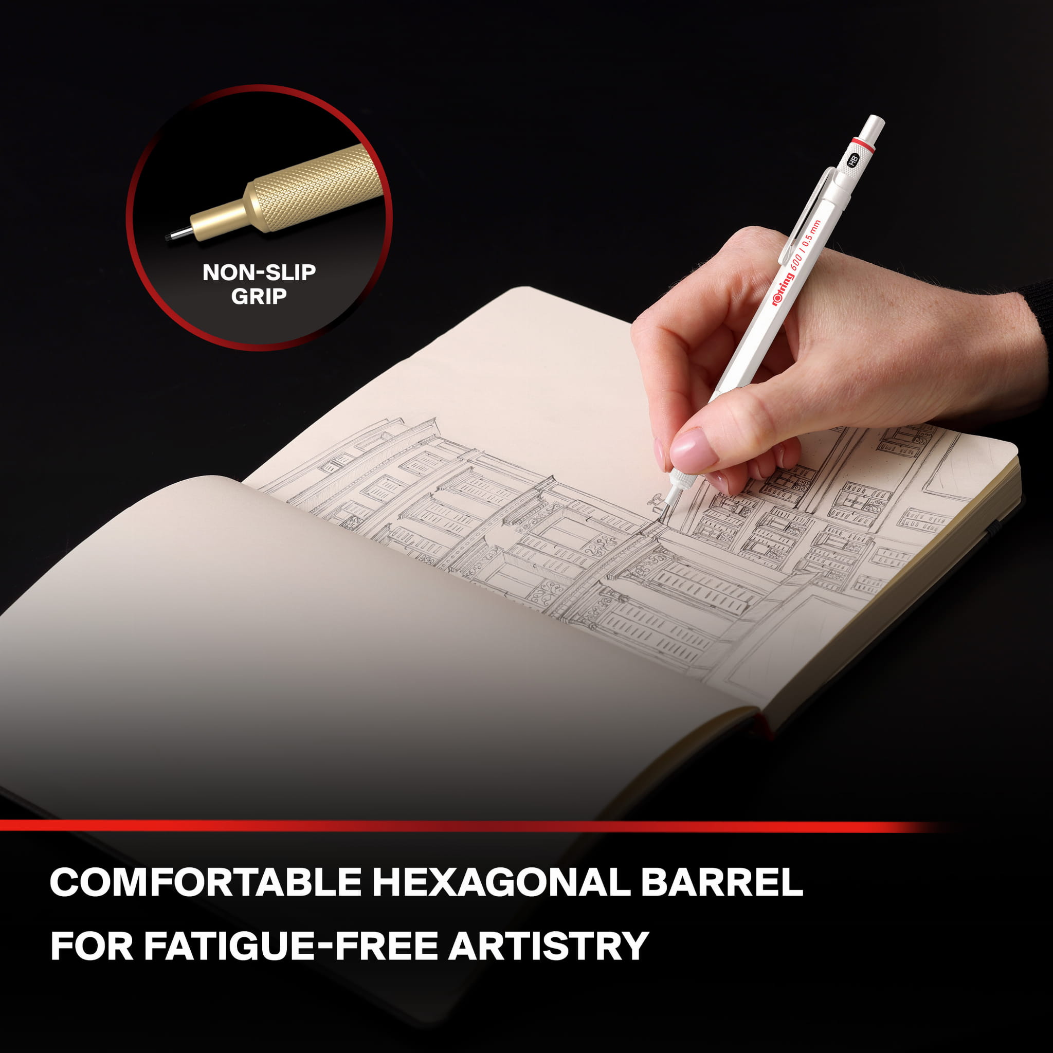 Ołówek automatyczny rOtring 600 to idealny przyrząd do opisu, rysunku i szkicu technicznego.